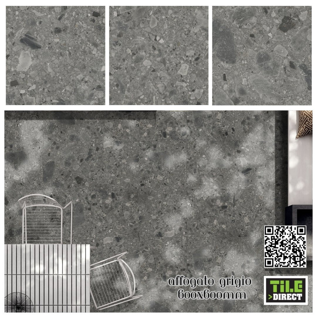 Fresh off the boat, the Affogato Grigio 600x600mm is designed to capture the timeless allure of natural terrazzo. This on-trend tile will transform your living spaces with its captivating charm. Ideal for enhancing the elegance of bathroom walls and floors, Affogato Grigio complements perfectly with the other colours in the Affogato Range - Affogato Crema and Affogato Almond. Whether you opt for Affogato Grigio on the floor and Affogato Crema on the walls or create a stunning focal point in your shower area, your tile installation is guaranteed to exude sophistication. The Affogato series offers a choice of 3 colours: Grigio 600x600, Almond 600x600 and Crema 600x600, suitable for both internal floor and wall applications.