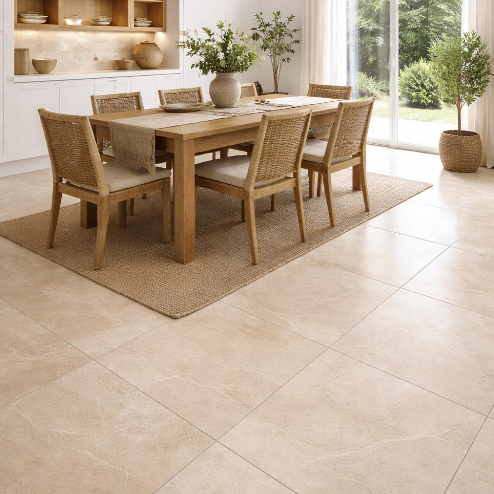Caprera Nutmeg Lappato 600x600mm porcelain tile features warm natural stone tones with soft beige and light nutmeg colouring, creating a welcoming and timeless look. Subtle variation across multiple faces gives the tile a natural appearance once installed, helping add depth without overpowering the space.The semi-polished lappato finish provides a gentle sheen that enhances the stone texture while maintaining a refined, modern feel. This 600x600mm porcelain tile is suitable for indoor floors and walls, making it a great option for kitchens, bathrooms, living areas, and open-plan spaces where a warm neutral tile is desired.Durable and easy to maintain, Caprera Nutmeg Lappato offers the look of natural stone with the practicality of porcelain, making it a reliable choice for everyday residential use.