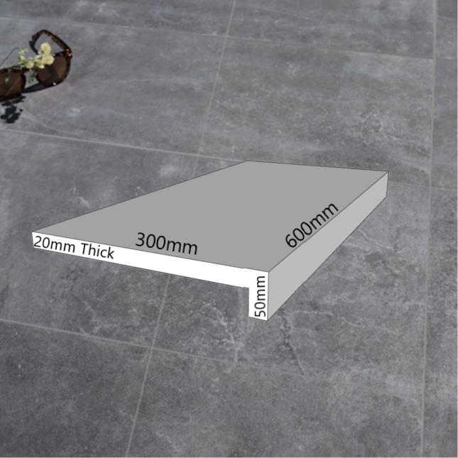 Important: While the main body of the 20mm porcelain paver is extremely durable, the "dropdown face" section is a decorative feature and not designed to withstand repeated impact. Frequent contact-such as people climbing out of the pool by knocking the vertical dropdown face instead of using the stairs can weaken the mitred edge over time, potentially causing the dropdown section to loosen or detach.