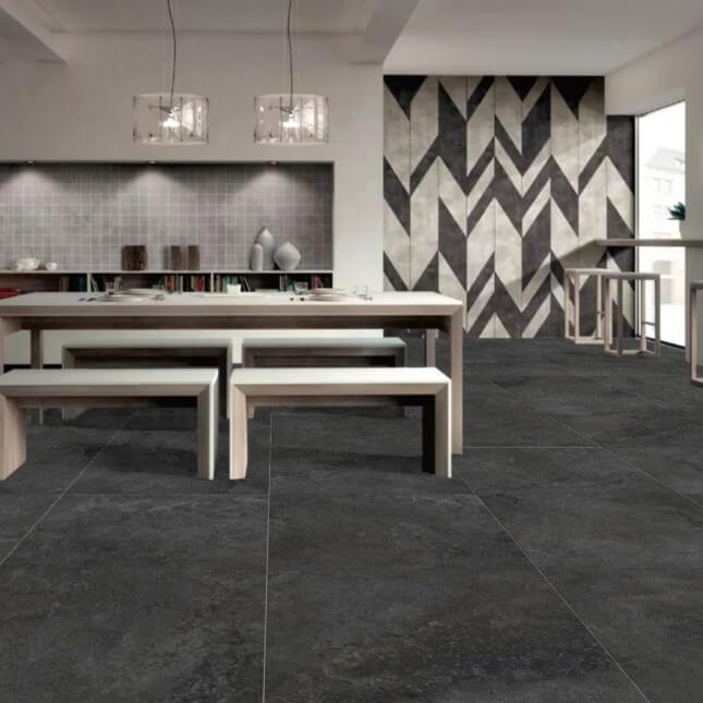 Stone Valley Charcoal is a cost-effective and low-maintenance porcelain tile that replicates the natural beauty of travertine. It's available in a 600x600mm size and is suitable for both residential and light commercial use on floors and walls. In addition to the charcoal color, it comes in Beige, Grey, and Bianco.